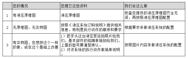 液壓系統(tǒng)訂購說明表: